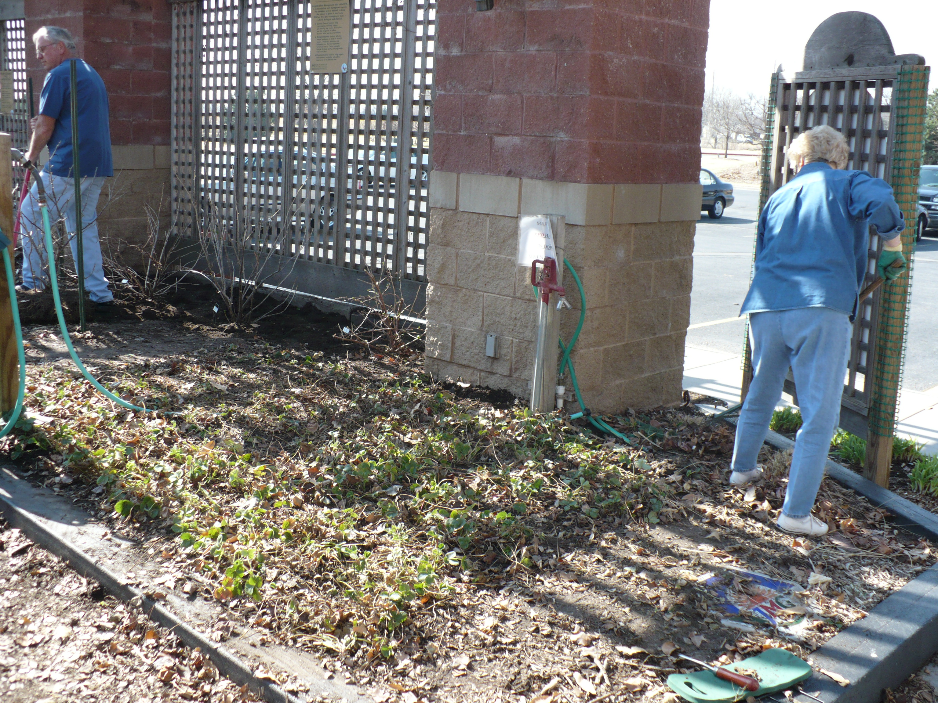 We were busy as beavers this past Tuesday in the Demonstration Garden! There was a lot of cleanup to do to get ready to start planting. We also had some other projects, mostly related to our fruit bed.
