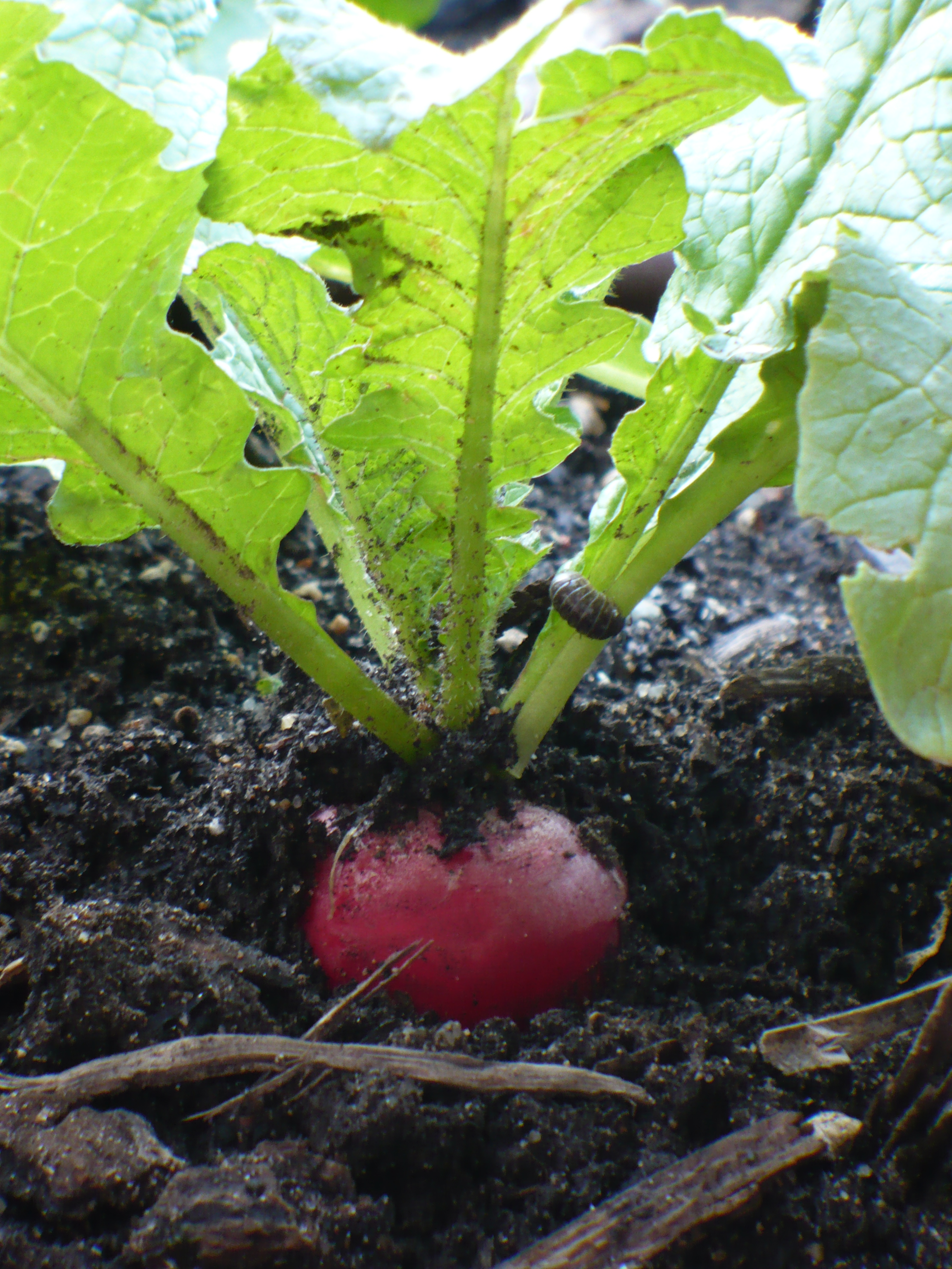 The radishes doubled in size over the weekend. Time to pull them!