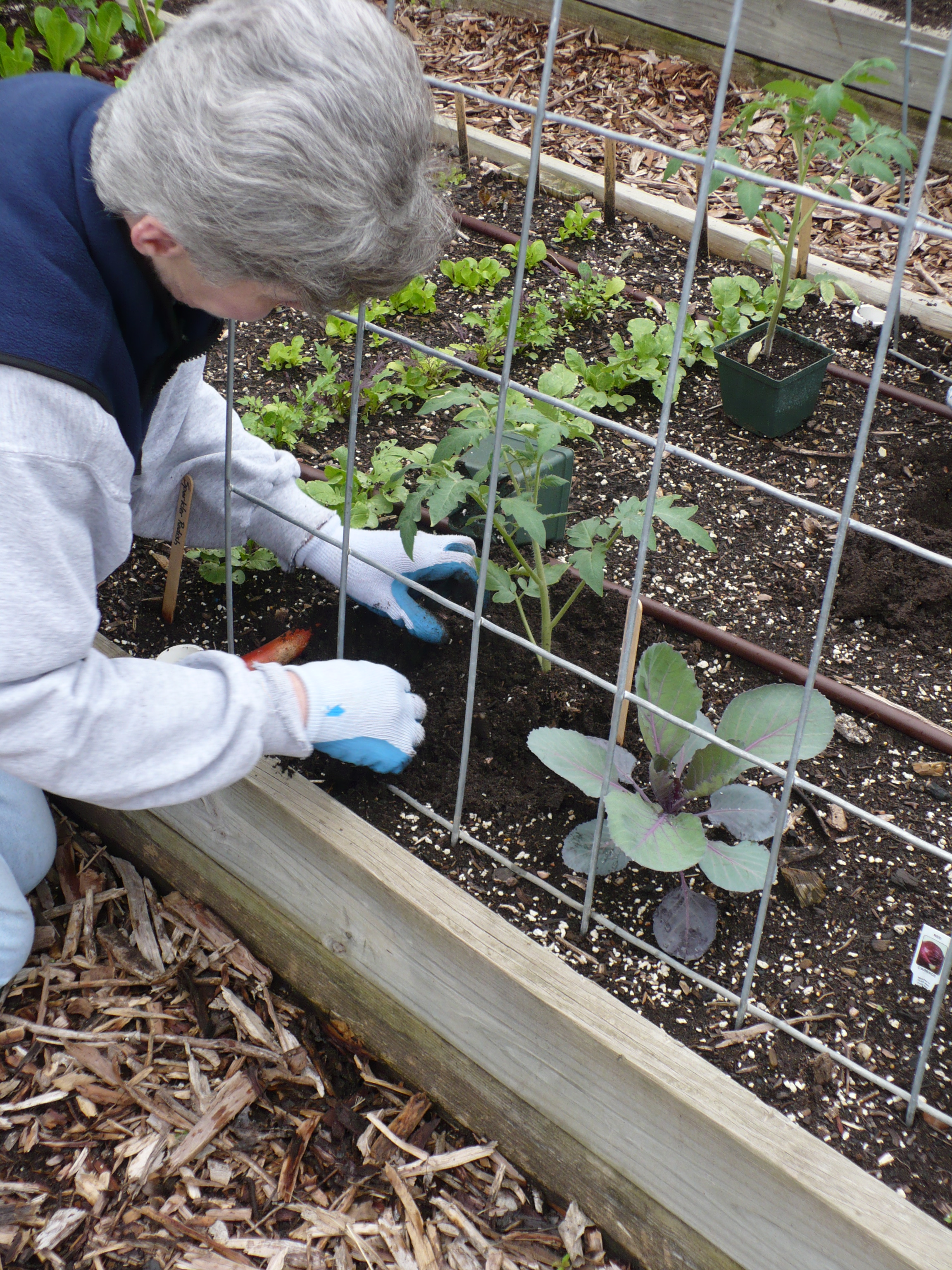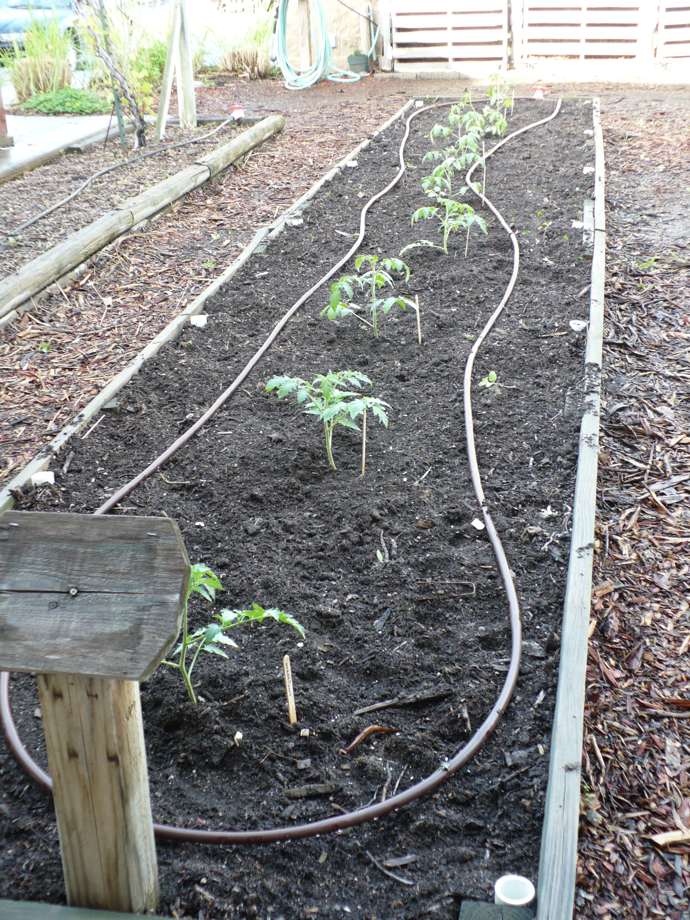 We got the tomatoes planted yesterday, despite the rain. The plants are in really great shape, and I’m excited to watch them grow!