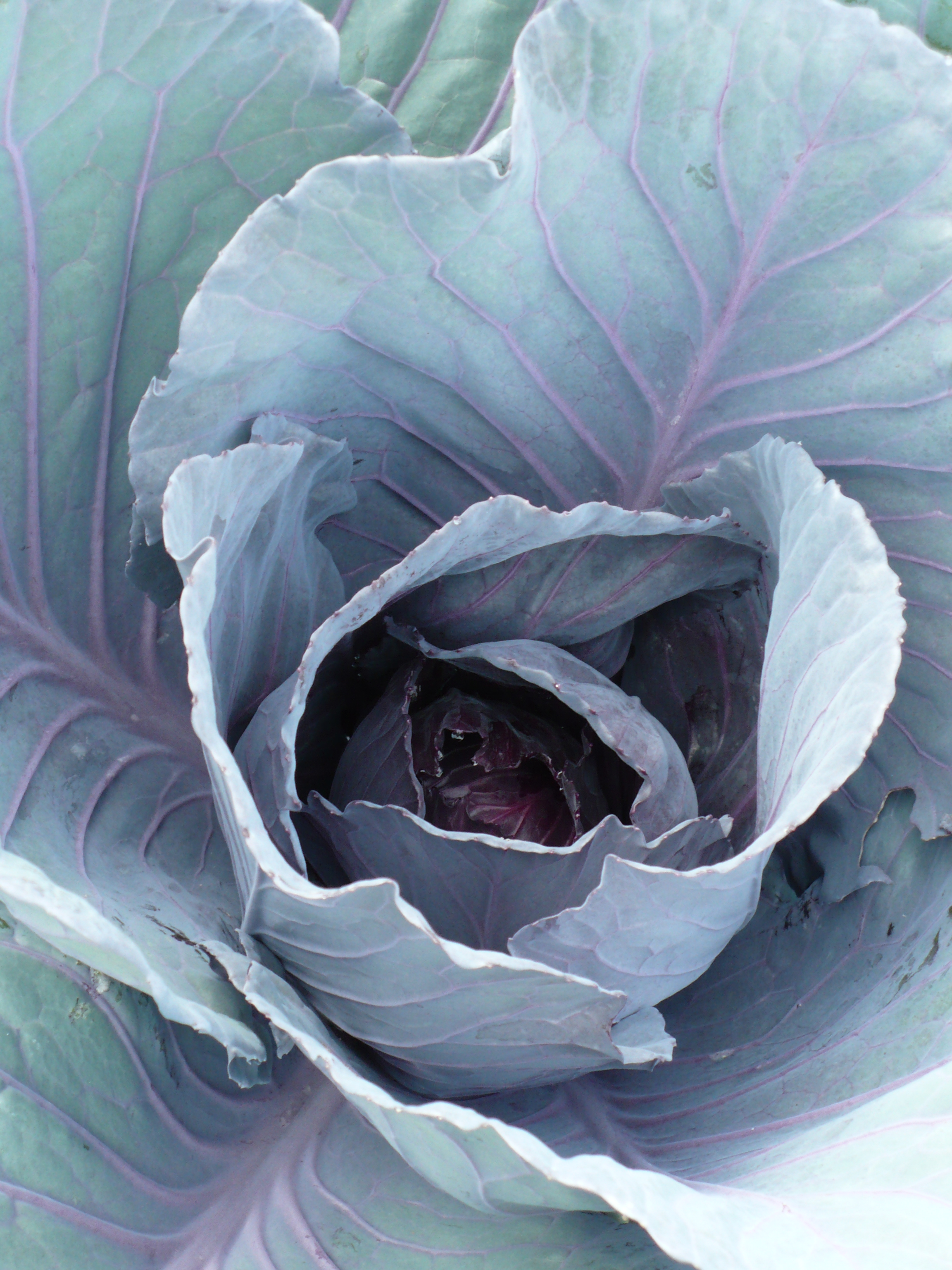 The unplanned red cabbage in the middle of the tomato patch is starting to form heads. I hope we can get it harvested here in another couple weeks to give the tomatoes more space to grow!