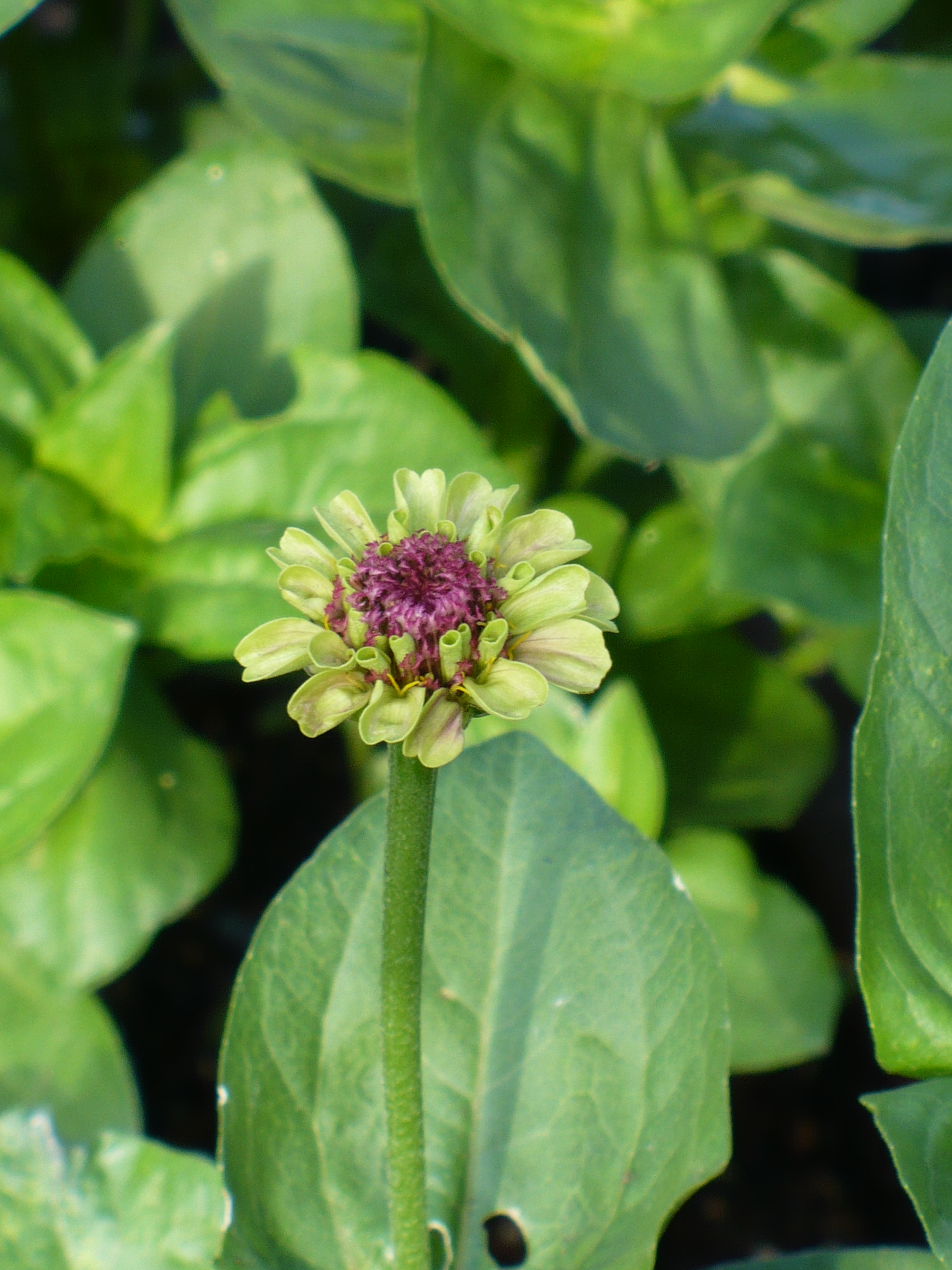 This is Queen Red Lime Zinnia. It has a red center with green outer petals. I can’t wait to see it in full bloom!