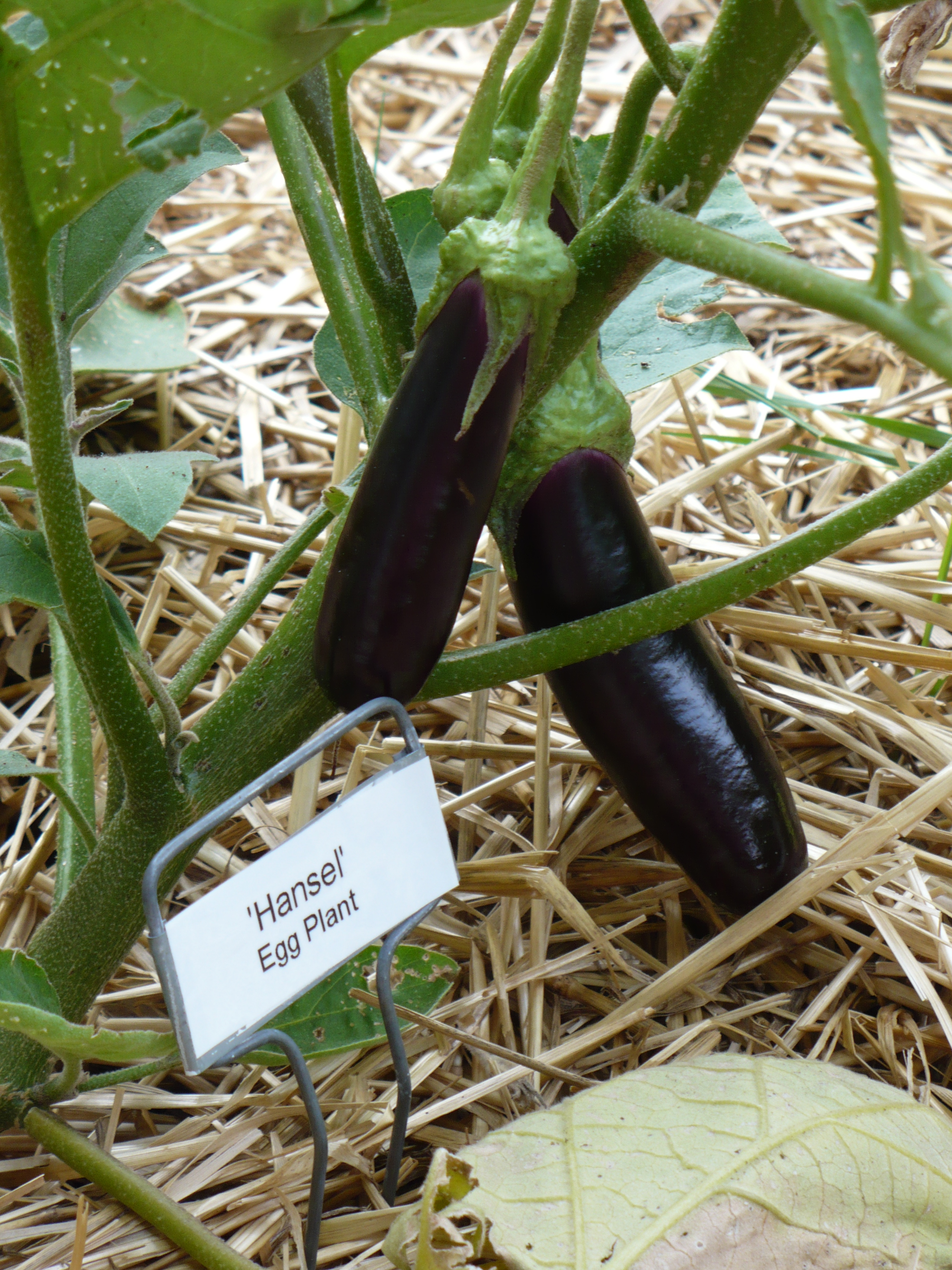 We have 3 varieties of Eggplant in the Demo Garden: Hansel, Gretel, and Zebra. Hansel and Gretel are both All America Selections, which means they should do well all over the U.S. Hansel and Gretel are both producing, while Zebra is a couple weeks later.