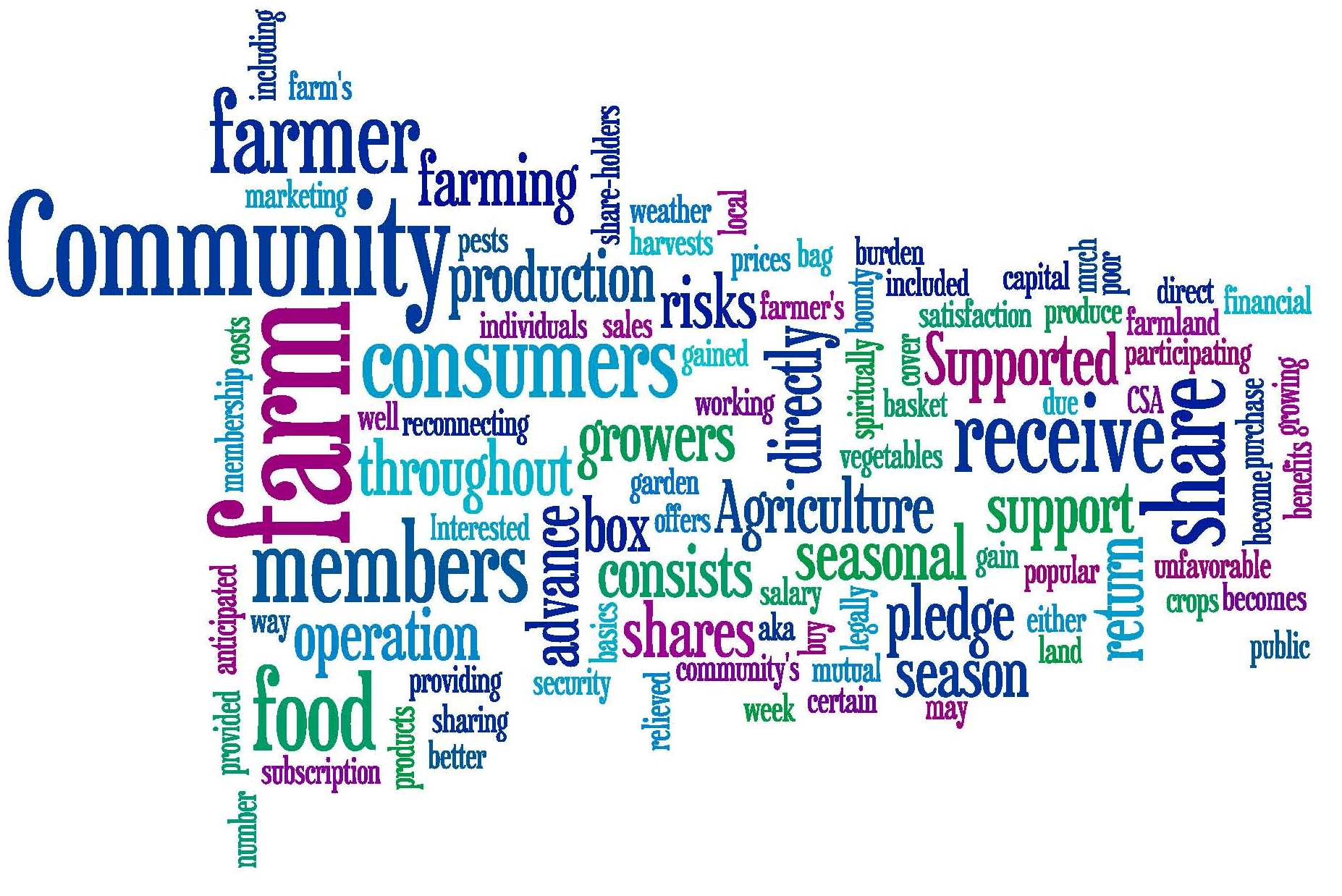 Here’s a Word Cloud I put together using http://www.wordle.net to help(maybe?) visualize what CSA is all about: