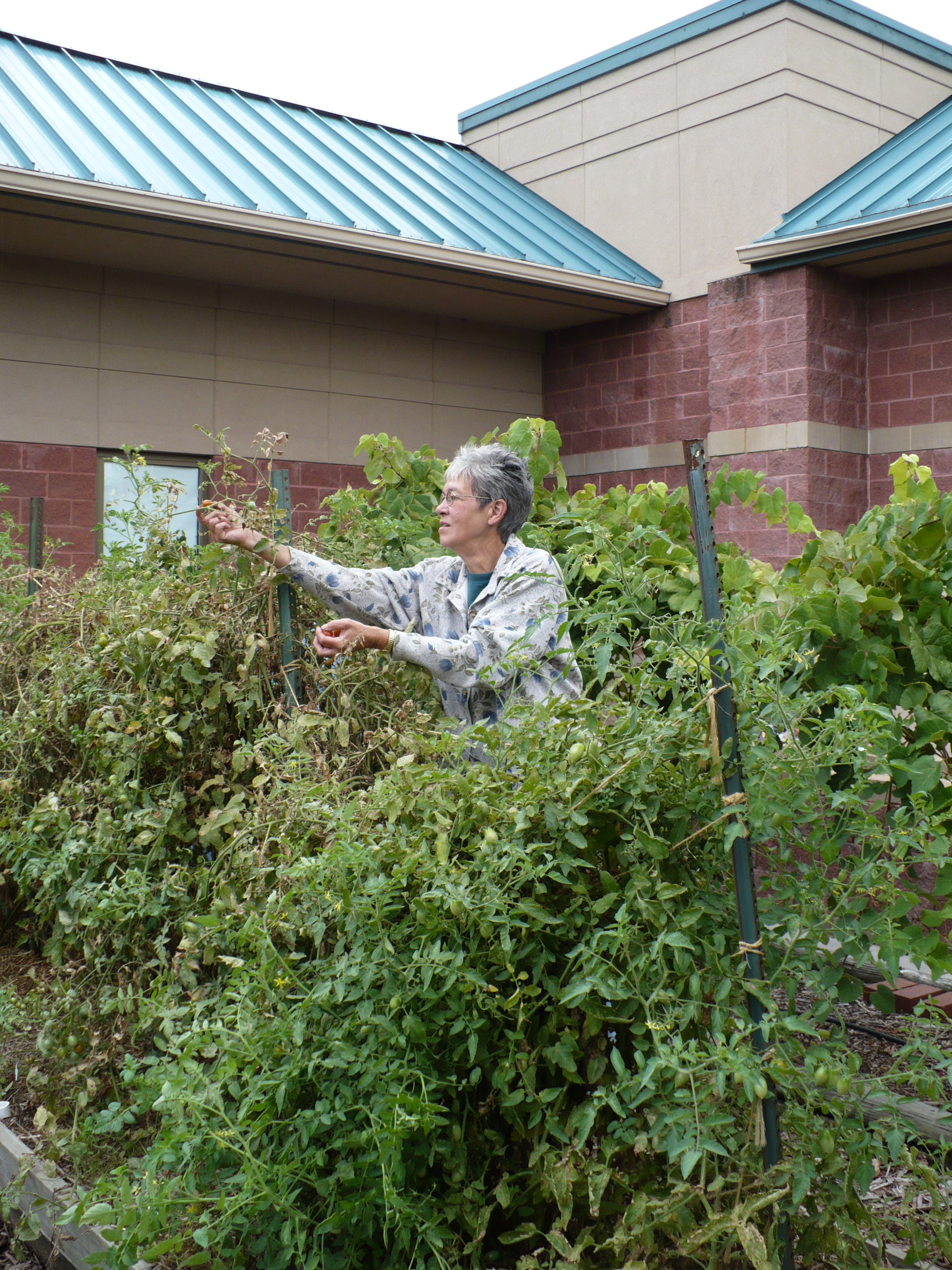 isn’t looking great, like most of our tomatoes, but is still producing like crazy, it is up to you. If you are sick and tired of tomatoes, maybe pulling it out is okay. Don’t forget that you can take that produce to the Kansas Food Bank for our Plant-A-Row for the Hungry program!