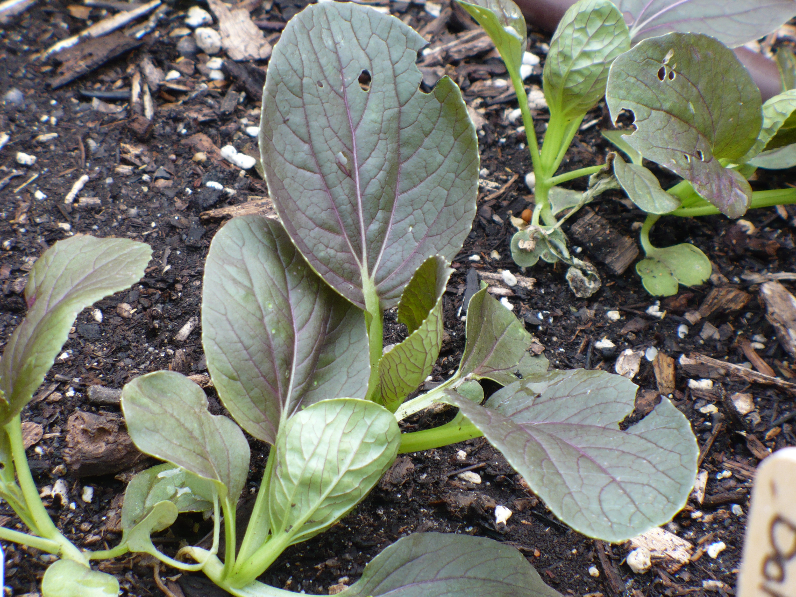 We have 6 rows of Watermelon Radishes, 1 row of purple Kohrabi (‘Kolibri’), 3 rows of Purple Bok Choy, 6 rows of ‘Purple Rain’ carrots, and 6 rows of lettuce