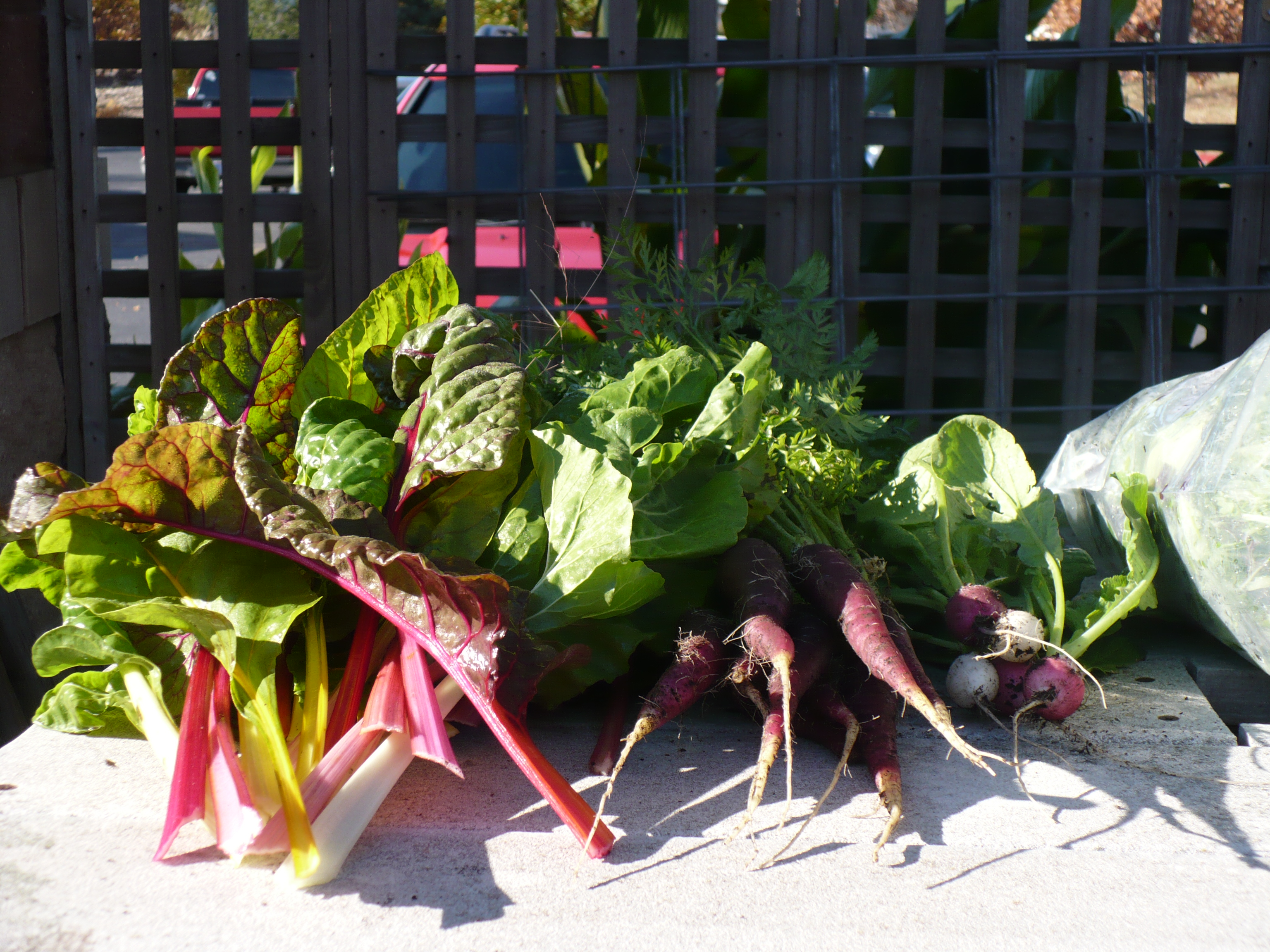 The Swiss Chard and some purple carrots before they were made into Salad.