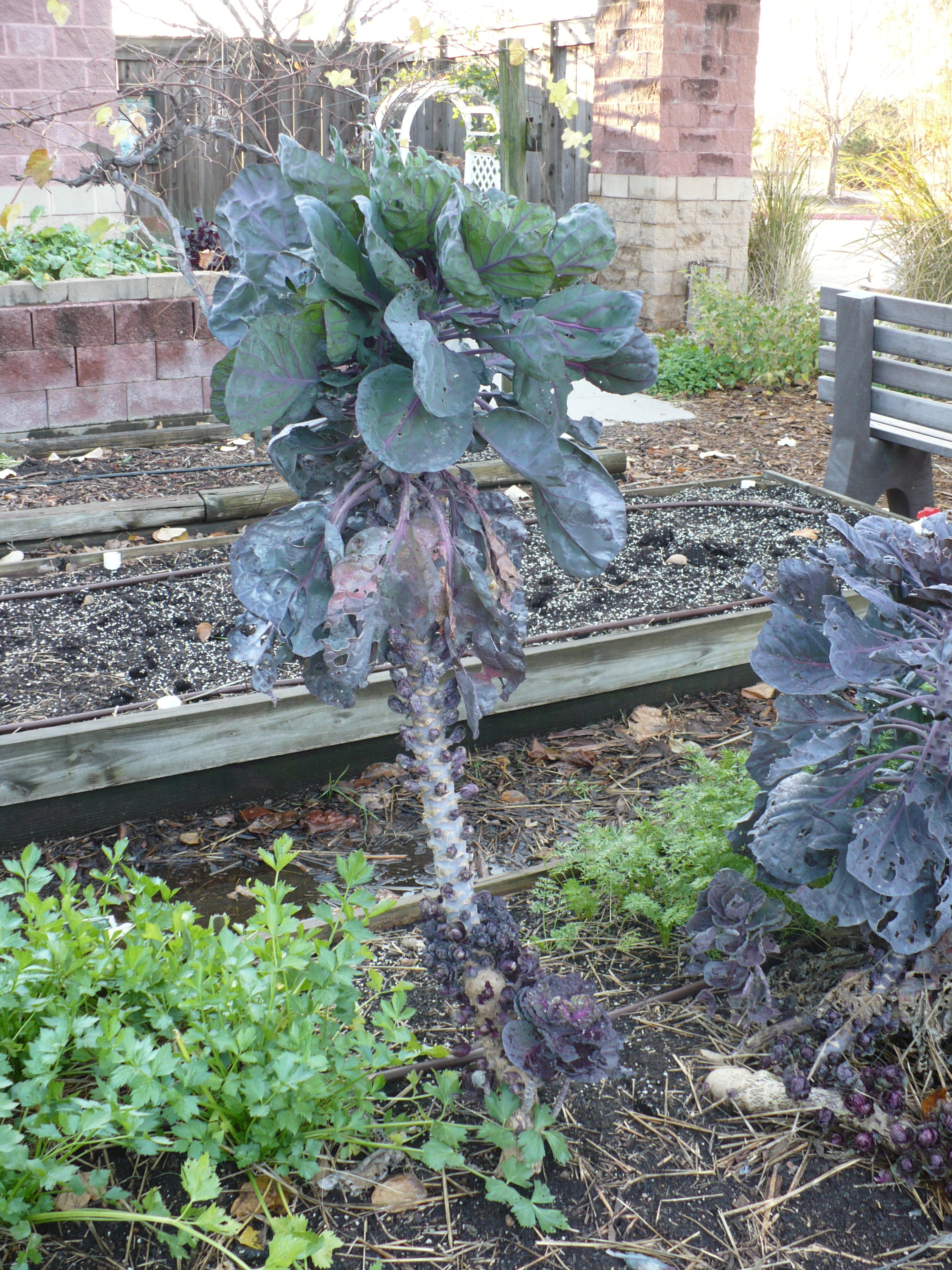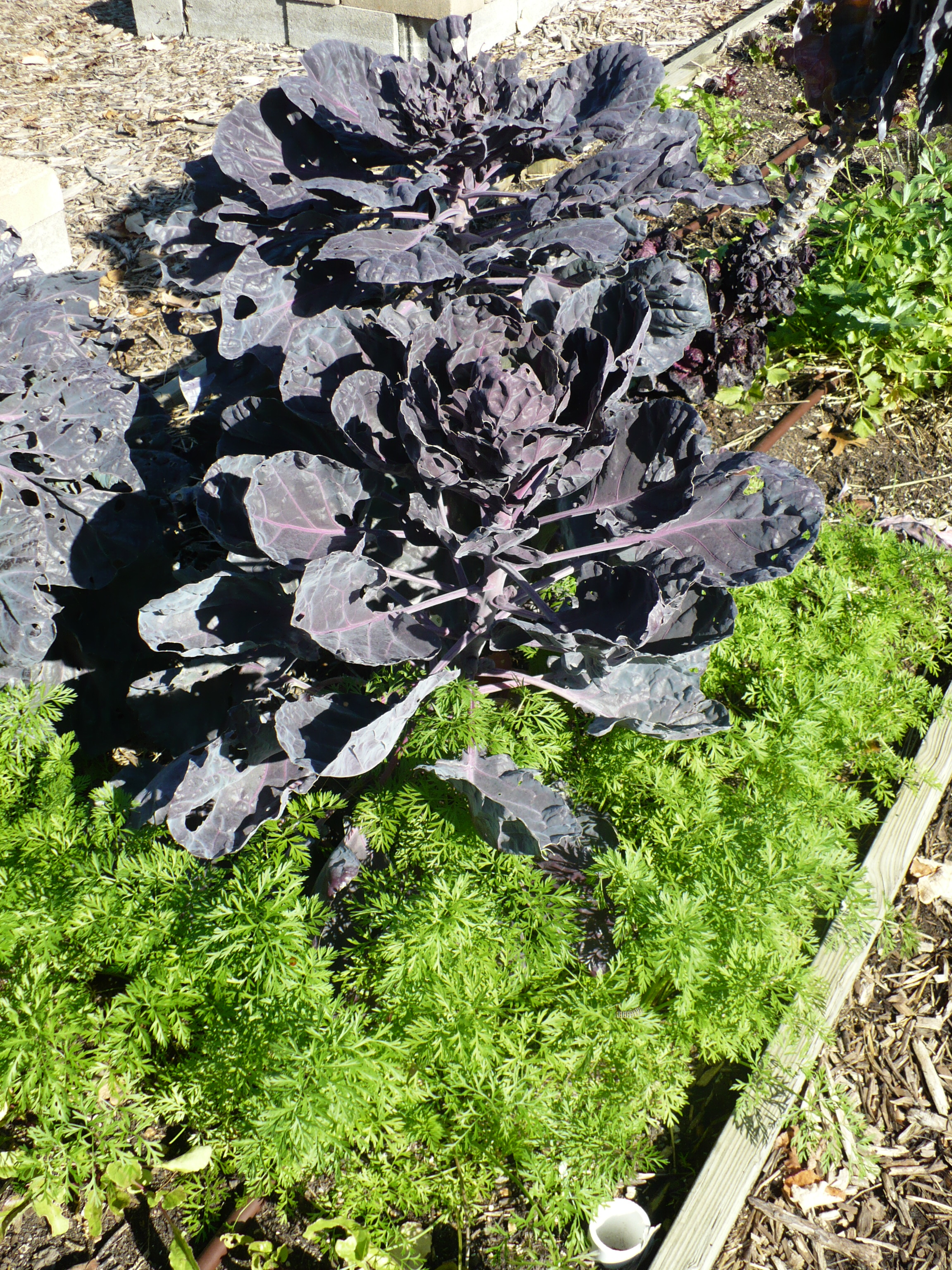 Yeah, I still can’t decide. I do like the contrast with the carrot tops! I keep checking on them, wanting to see good growth on the sprouts. Unfortunately, I’m not sure how good the yield will be. We’ve had so many caterpillars munching on them that many of the sprouts look rather shredded. That is definitely a major challenge of growing brussels sprouts here. The season is so long and so filled with caterpillars that it can be a challenge to get a good crop. We’ll just have to wait and see what the final result is. I’m thinking we’re not planting Brussels Sprouts next year!