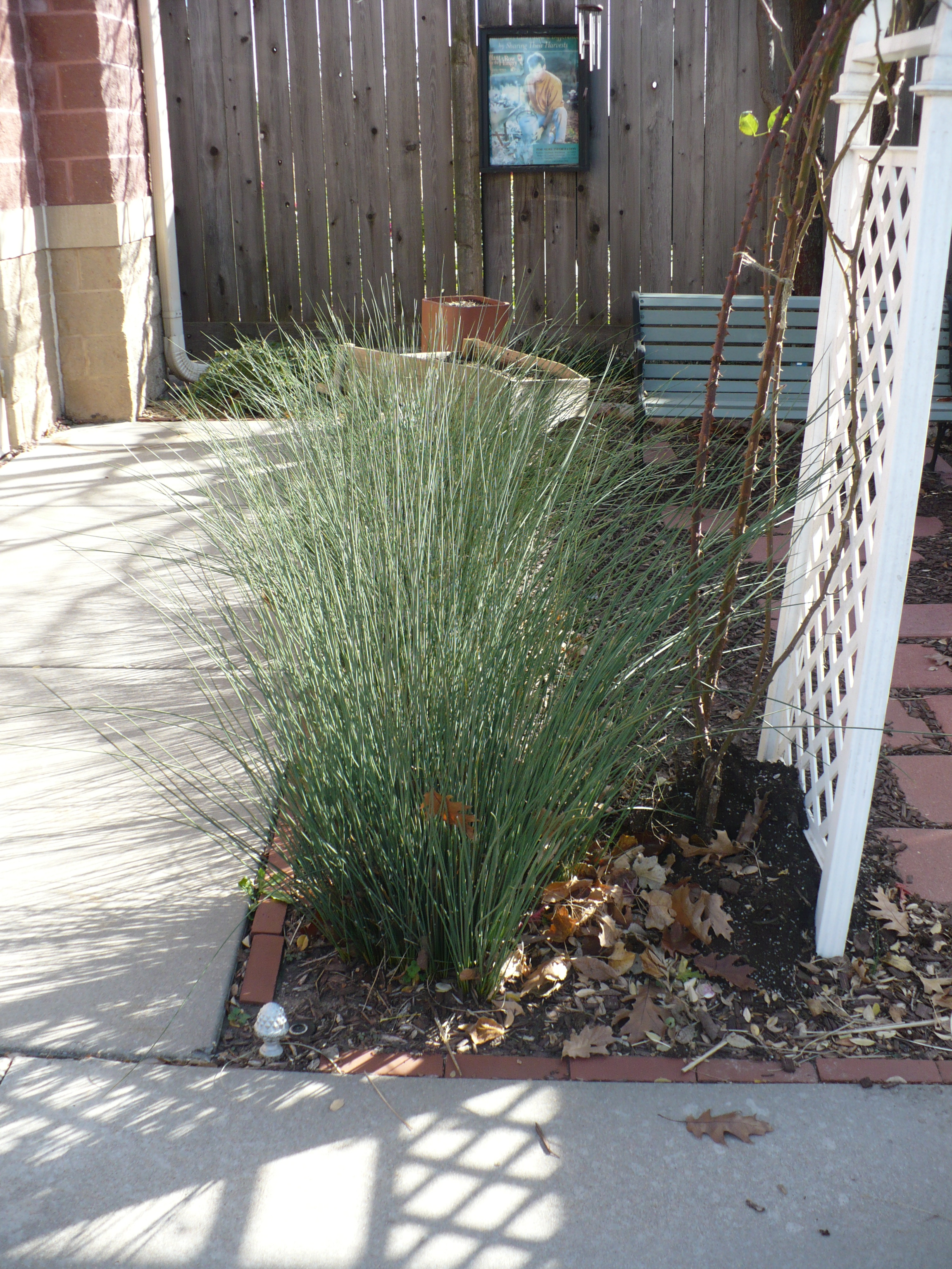 This is Little Bluestem, a native prairie grass. (Yes, I managed to crop most of my shadow out of the picture.) You have to love that rust color in the fall.