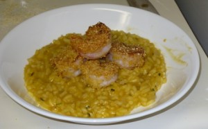 I’ve been cooking some pretty yummy things with vegetables that are left over from last year. I made a Butternut & Shrimp Risotto with a butternut squash from the farmers market that has been living under our sink since October. (Now to use up those turnips…)