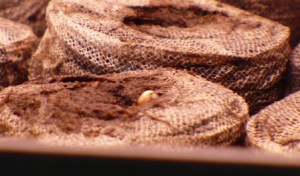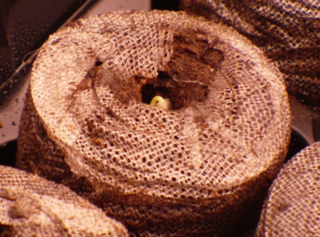 If you look close, you can see the radicle on the cabbage seed just poking out. This is 1 day after planting!