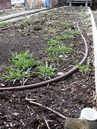 Well…it’s green, yes. But this is maybe less exciting than other things growing might be. This particular bed has lots and lots of grassy weeds growing. We will make quick work of them when we start working the garden in a couple weeks, but they are green right now!