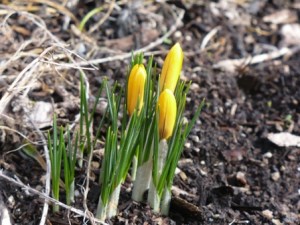 You know spring is coming when green things start popping up. You also can tell it is spring when pictures of those tiny green shoots and buds are exciting. By July we will think these pictures are silly and unimpressive.
