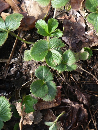 The strawberries are showing signs of life. We need to get all the dead leaves and “mulch leaves” that blew in last fall raked out.