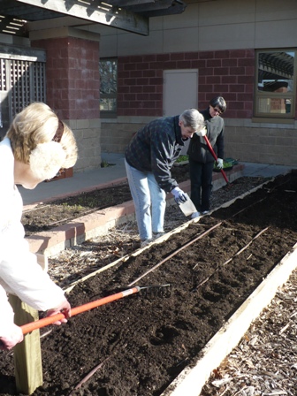 We planted Cherriete and Easter Egg Radishes, Tyee Spinach, and Wildfire Lettuce Mix on the south end of the garden. We also planted some more radishes and transplanted some leftover lettuce from the garden show into the area where we will have tomatoes in May. No reason to leave that space empty!