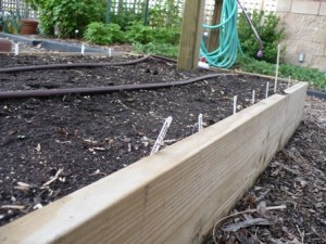 So…one more row of Red Ace beets (After 23 years of eschewing beets, in the last few years I’ve decided that they are one of my favorite vegetables). Also, two more rows of Yellow Sun carrots, interplanted with the rest of the Cherriette radishes. The idea of interplanting is that the radishes will mark the row for the carrots and keep the weeds down while the carrots are working on their slow germination process. Then the radishes are harvested and the carrots can take over the space! I’m going to be interested to see how this particular space saving technique works out.