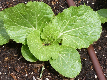 The Chinese Cabbage is getting absolutely huge. It should be starting to curl up into a loose head any time now.