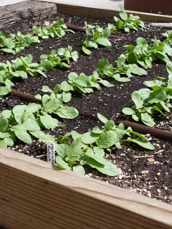 The radishes haven’t minded the weather one bit. In fact, I think the roots are just barely starting to swell. We should have radishes in another 10-14 days.