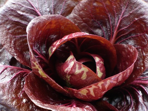 Actually, I find radicchio disgusting, except in small pieces mixed with a whole bunch of other salad greens. The reason to grow it though, is so that I can go out to the garden and see this in mid-February. Yes, this picture is literally from mid-February in 2009.