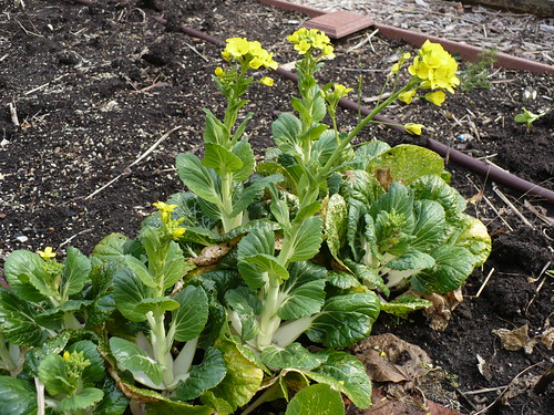 I’m not sure if this ‘Toy Choi’ bok choy is bolting because of the crazy weather changes or if it got to mature size and we didn’t harvest it, so it bolted.