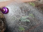 - Water thoroughly, not just a little sprinkle. Make sure the water soaks in, down to at least 8″ deep, and more if possible. Use a screwdriver to test if the soil is soft down deep enough.