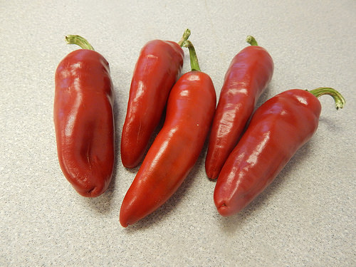 The Espelette (Basque region) and Fushimi (Japan) peppers, I tried with simple sautéing. The Espelette peppers probably should have been dried and ground instead…like a paprika pepper. Oh well.