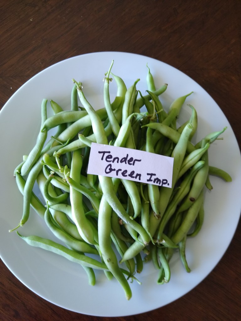 ‘Tenderette’ is a 58-day variety of bean. It also grows about five inches long and is slender. It is medium green in color. As with Heavy Harvest, this too only had a few ready to be picked.