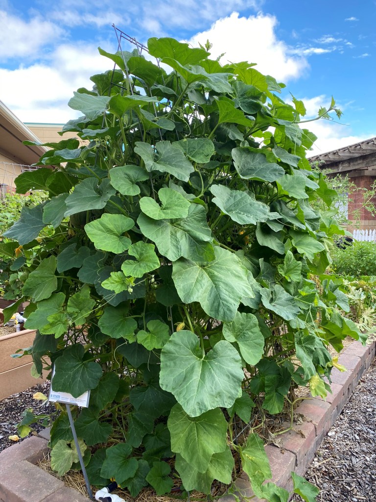 Winter squash generally has a vining nature and needs either lots of space to sprawl out or a trellis to grow vertically when space is at a premium. Because it is harvested when fully mature, it has a tougher skin than summer squash that is not usually eaten. Winter squash is usually ready to harvest late summer or early fall. One of the benefits of growing winter squash is that it can store well, even through the winter months. The winter squash in the demo garden (‘Waltham’ butternut and ‘Autumn Frost’ acorn squash varieties) are setting fruit but won’t be ready to harvest for several more weeks. We’ll keep you posted!
