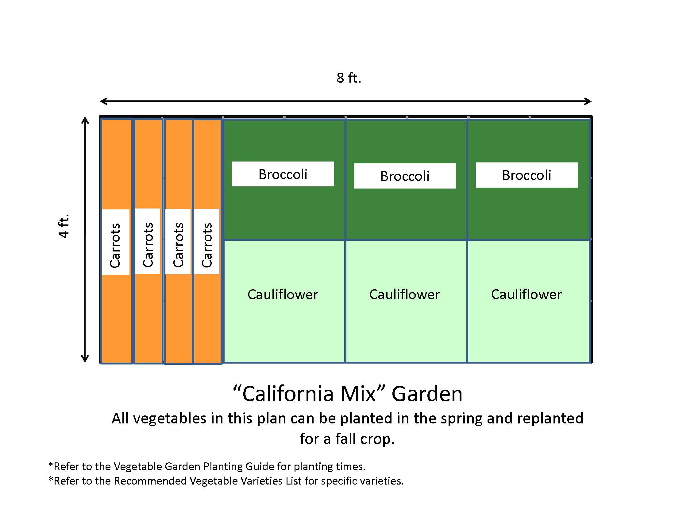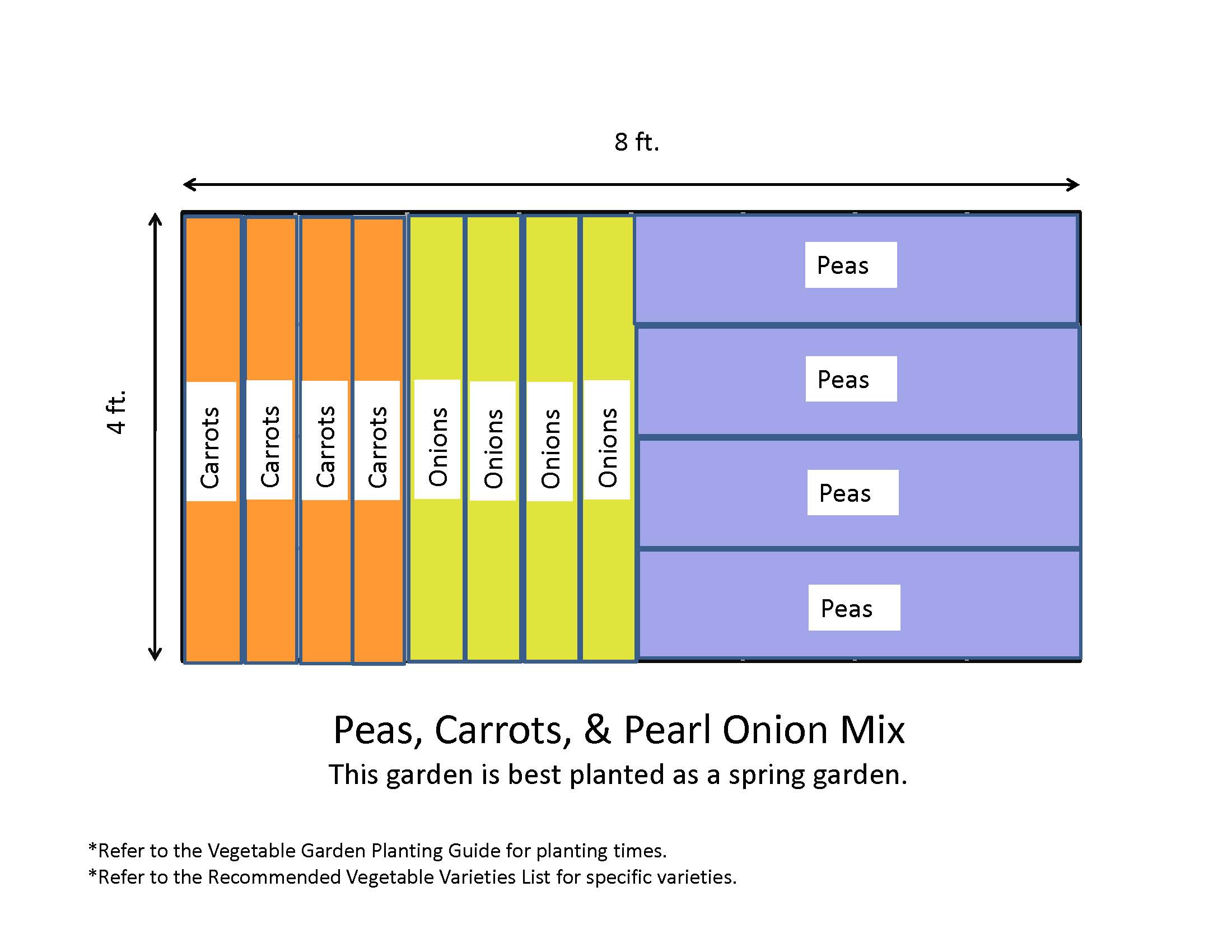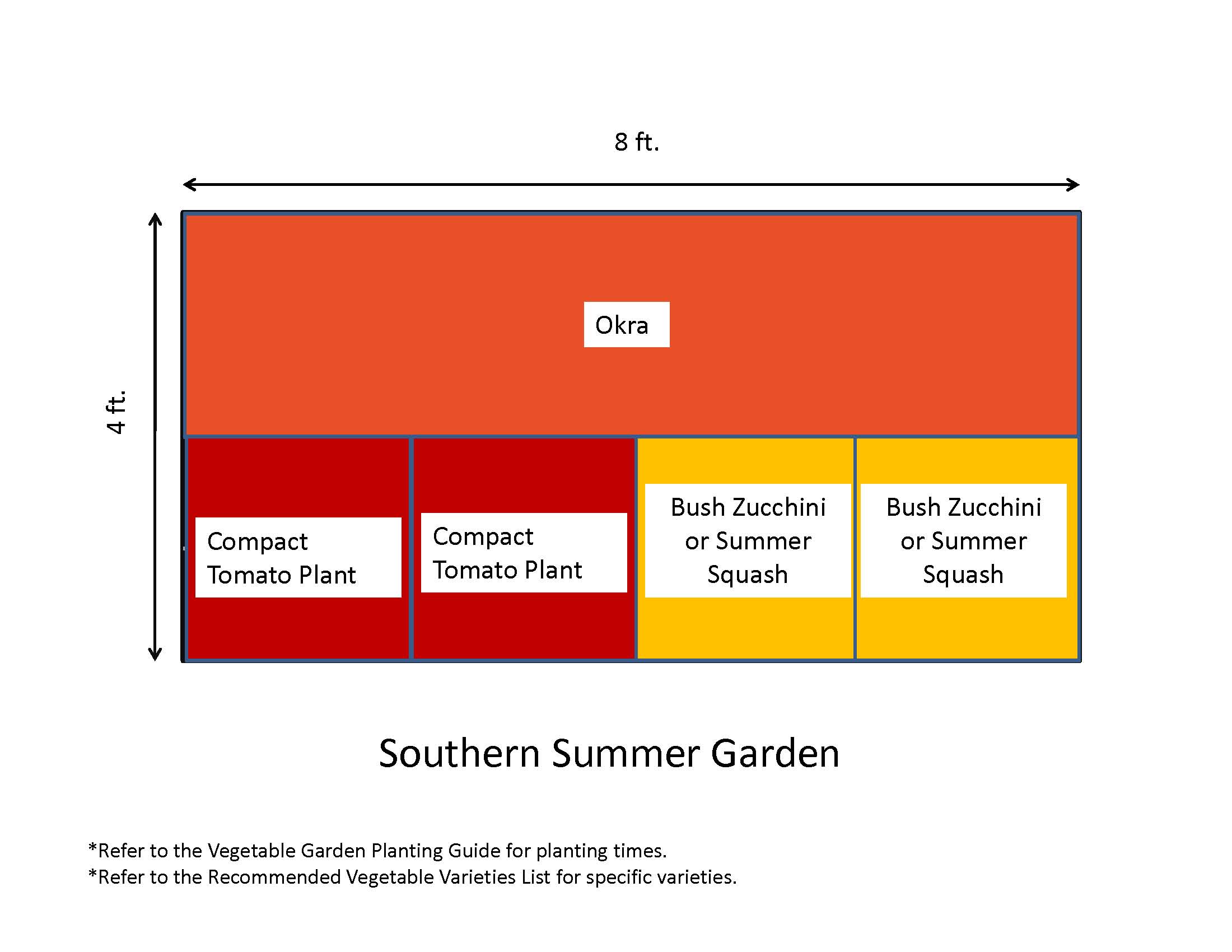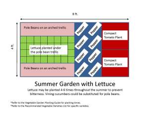 Are you just getting started with vegetable gardening and looking for some ideas on how to plan your garden? A couple other horticulture agents and I have put together some simple garden plans that will get you started on your garden. These garden plans are all 4 ft x 8 ft gardens, ideally designed to be raised beds. However, raised beds aren’t necessary! If your garden space is bigger, you can simply use several of the garden templates end to end. (If you stack them side by side, you won’t be able to reach the middle!) The gardens are designed so you don’t have to walk in any of the planting areas. These garden plans are guidelines, so make them work for you! (Oh, and sorry about the sometimes-garish color combinations. I might get those fixed at some point.)